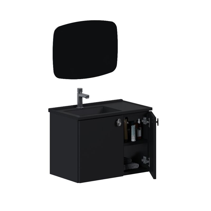 Armário Banheiro Aço 60cm Tarumã Preto com Lavatório Preto - P103358 - COZIMAX