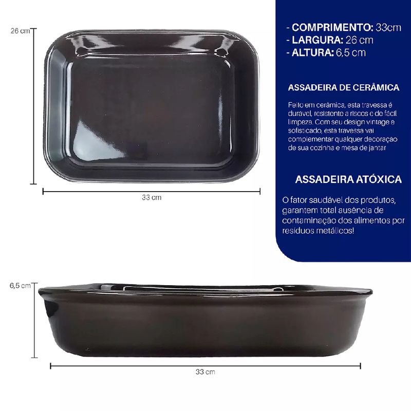 Assadeira Retangular Castanho 33x26x6,5cm - D1463 - DOLCE HOME