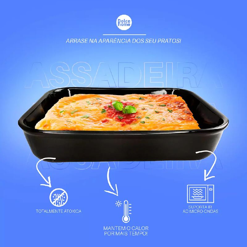 A Assadeira Retangular Dolce Home é indicada para o preparo e serviço de pratos quentes e frios, como lasanhas, assados, gratinados, carnes, legumes, saladas e sobremesas. Sua cerâmica distribui o calor de maneira uniforme, contribuindo para um cozimento mais eficiente e mantendo os alimentos aquecidos por mais tempo após sair do forno. Pode ser utilizada diretamente no forno convencional ou no micro-ondas. Atenção: a chama do fogão não deve ser direcionada diretamente à peça, pois isso pode causar risco de quebra. Caso seja necessário utilizá-la sobre o fogão, recomenda-se o uso de chapa difusora de ferro para distribuir o calor adequadamente. Para maior durabilidade, evite choques térmicos e realize a limpeza com esponja macia e detergente neutro. Elegante, versátil e funcional, a Assadeira DOLCE HOME é a escolha ideal para quem deseja servir com estilo e praticidade.