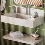 Apresentamos a Bancada em Porcelanato Nápoles da Cozimax, a solução perfeita para quem busca unir design minimalista, durabilidade extrema e praticidade no acabamento de banheiros e lavabos. Esta bancada é fabricada em porcelanato de alta densidade, um material nobre e de altíssima resistência, conhecido por sua baixa porosidade, resistência a manchas, riscos e umidade. Seu acabamento apresenta bordas em meia esquadria com pintura PU, que confere um visual limpo, contemporâneo e sofisticado. Disponível na cor bege, um tom clássico, versátil e aconchegante, ela possui 83cm de largura, dimensão ideal para ambientes compactos ou de médio porte. A bancada já inclui o frontão (aparador lateral) integrado e acompanha mão francesa para fixação na parede, garantindo uma instalação segura, estável e com acabamento embutido.