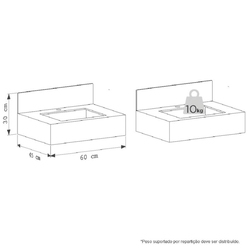 Dimensões: 60cm (Largura) x 45cm (Profundidade).