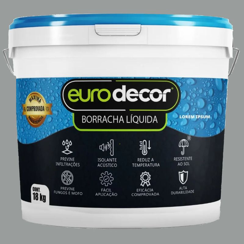 Descrição: Apresentamos a Borracha Líquida Impermeabilizante Eurodecor na cor Titanium, uma solução de alta performance para proteção de superfícies contra infiltrações e danos causados pela umidade e água. Este impermeabilizante de última geração possui formulação viscosa que, após a aplicação, forma uma membrana contínua, flexível e altamente resistente, criando uma barreira de proteção eficaz contra a ação da água. Com a sofisticada cor Titanium e embalagem de 18 kg, é ideal para uso em áreas residenciais, comerciais e industriais que exigem máxima proteção e durabilidade.