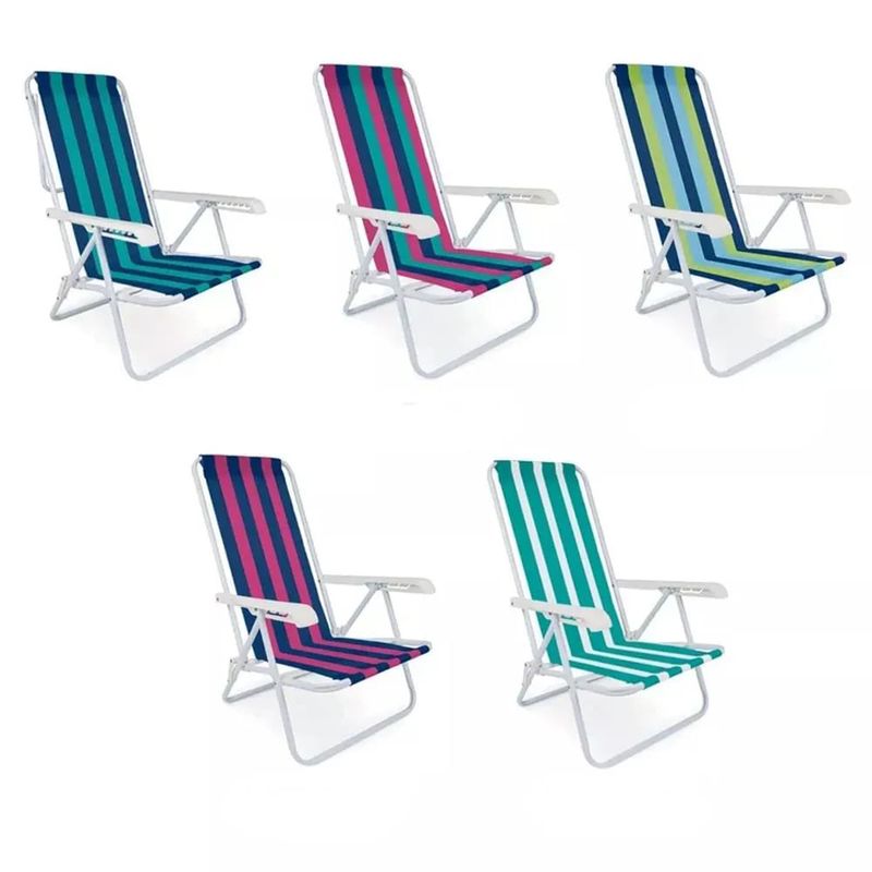 Cadeira de Praia Reclinável Alumínio 4 Posição Cores Sortidas - 002103 - MOR