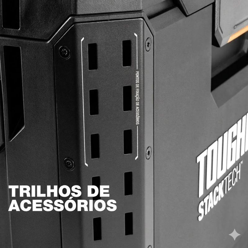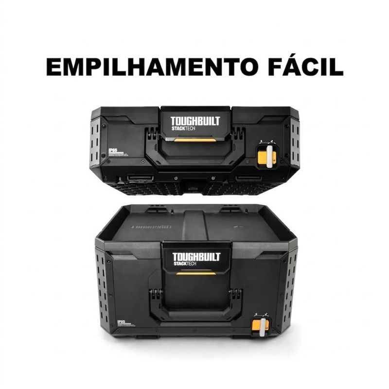 Descrição: A Caixa Organizadora Modular StackTech - TB-B1-B-50 - TOUGHBUILT BRASIL é uma solução profissional de armazenamento desenvolvida para transportar, organizar e proteger ferramentas em ambientes de trabalho exigentes. Fabricada com estrutura em polímero de alta resistência, cantos blindados e tampa reforçada com aço, a caixa oferece elevada durabilidade e proteção contra impactos. O modelo faz parte do sistema modular StackTech™, que possui um topo autoalinhável que facilita o empilhamento automático e um sistema de travamento seguro entre módulos. Com vedação com classificação IP65, a caixa protege o conteúdo contra poeira e respingos de água, tornando-se ideal para obras, oficinas e uso profissional intenso.