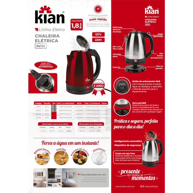 Chaleira Elétrica de 1,8 Litro em Inox 220 Volts - 26022 - KIAN