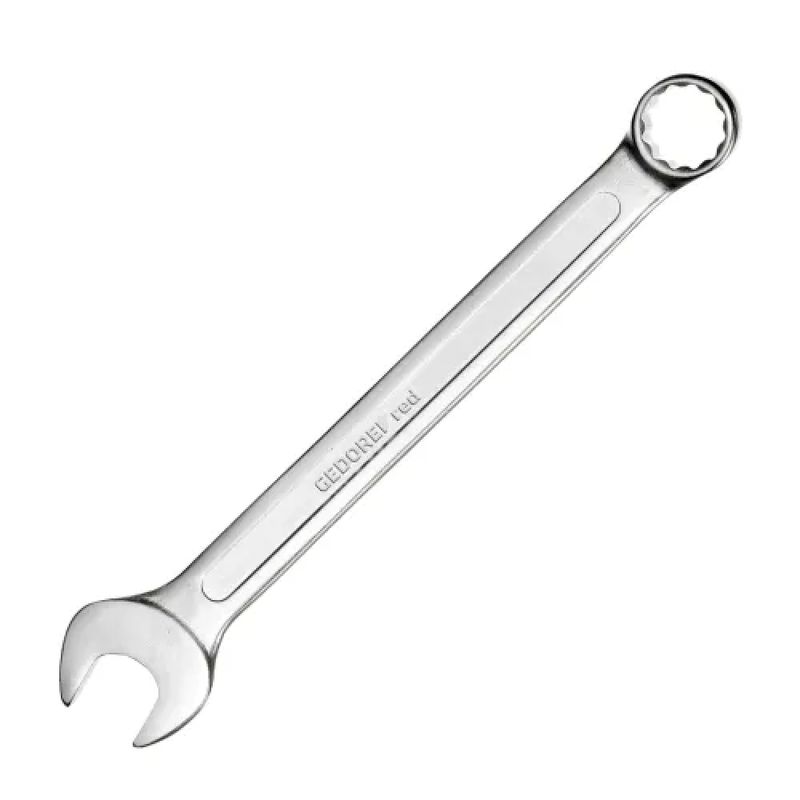 Descrição: A Chave Combinada 7/16" - Gedore Red, modelo 3365143, é uma ferramenta profissional projetada para oferecer durabilidade, precisão e desempenho em trabalhos de aperto e desaperto de porcas e parafusos. Fabricada em aço cromo-vanádio de alta resistência, esta chave conta com acabamento niquelado e/ou cromado, proporcionando proteção contra corrosão e desgaste. O produto combina uma extremidade de boca fixa e outra extremidade do tipo Unit Drive (estrela), ambas na medida de 7/16 polegada (? 11,11 mm). A inclinação das cabeças em relação ao corpo da chave é de aproximadamente 15° na boca e cerca de 10° a 15° no lado estrela, o que facilita o acesso em espaços reduzidos. É uma ferramenta de tamanho moderado, pesando cerca de 0,046 kg, tornando-a prática para uso em oficinas ou no conjunto de ferramentas doméstico.