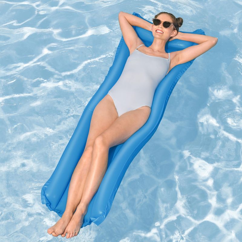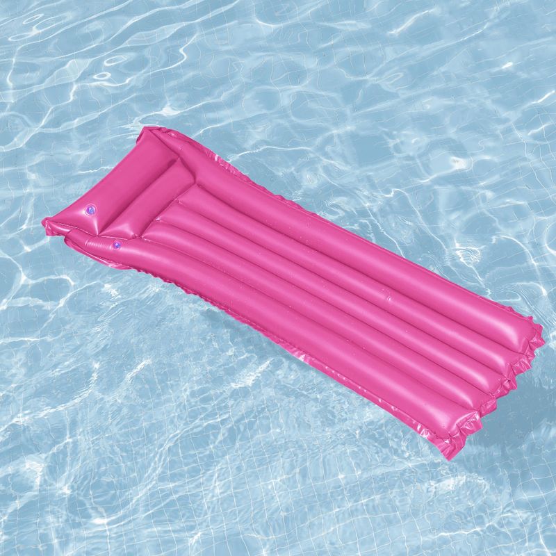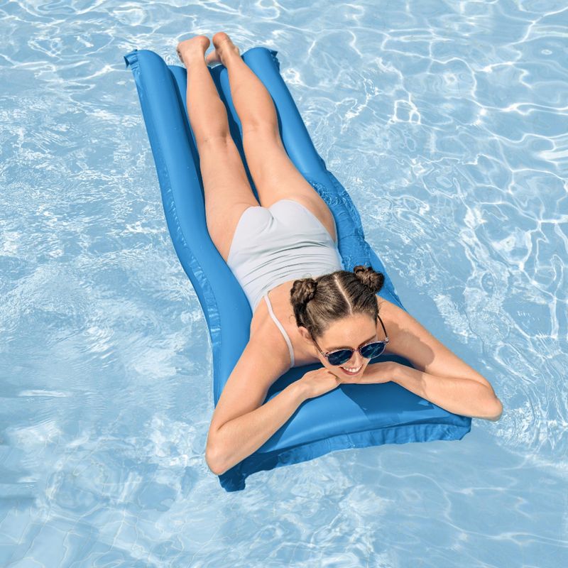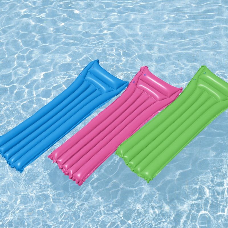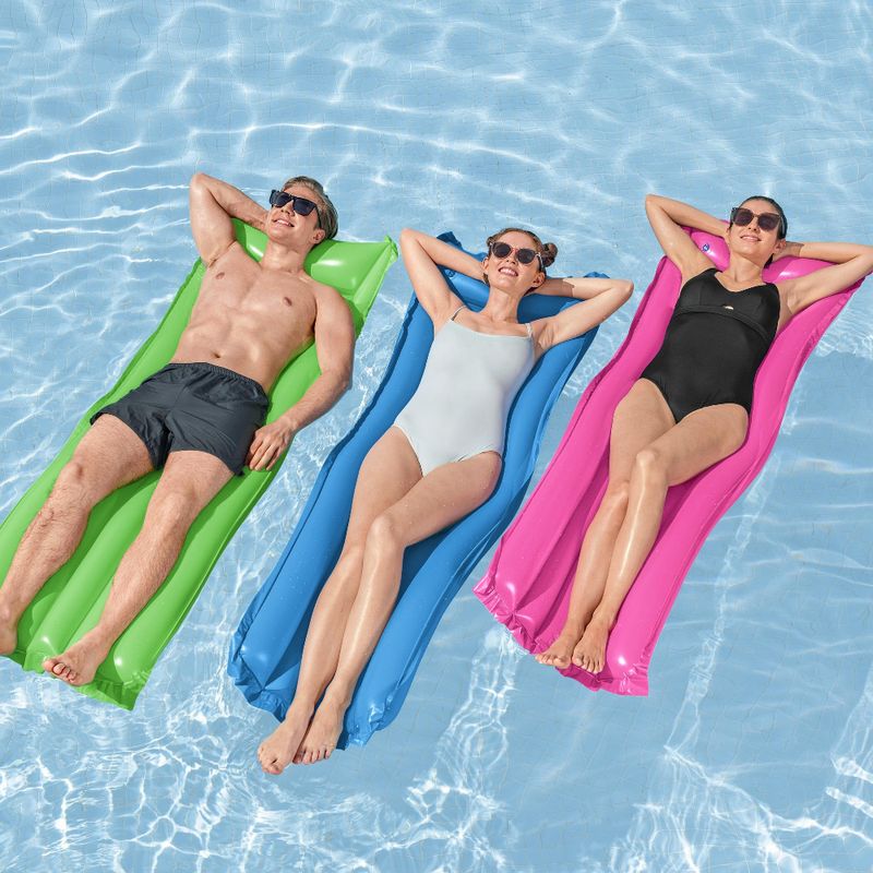 Indicação de uso: O Colchão Bronzeador Liso Matte Bestway é indicado para uso em piscinas, praias, chácaras e áreas de lazer, proporcionando conforto durante o banho de sol ou momentos de relaxamento na água. Seu formato alongado garante melhor acomodação do corpo, permitindo relaxar com estabilidade. Por ser leve e compacto quando desinflado, é fácil de transportar e guardar, sendo ideal para levar em viagens e passeios.