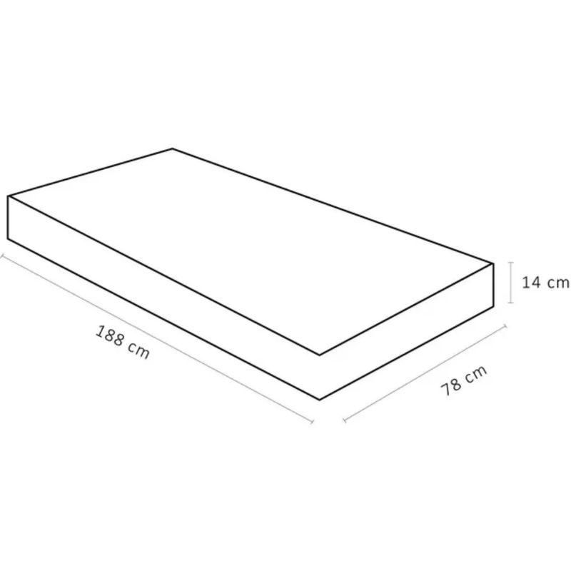 Dimensões: 78cm (Largura) x 188cm (Comprimento) x 14cm (Altura/Espessura).