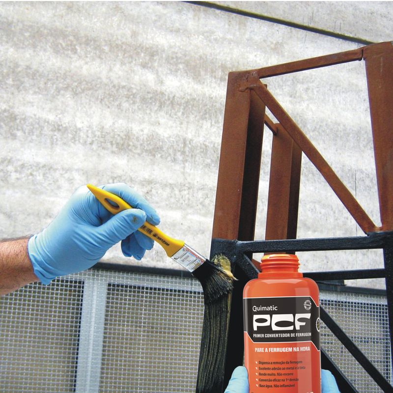 - Utilizado em quaisquer superfícies com ferrugem para converte-lá em um fundo para receber tinta de acabamento compatível com o PCF . Entre os tipos de tinta mais utilizados, recomendamos o uso de esmalte sintético, tinta epóxi e tinta PU. Entre outras aplicações, o PCF. pode ser utilizado em estruturas metálicas, portões, escadas e cercas.