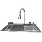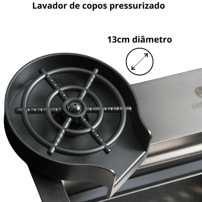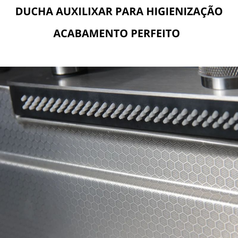 Torneira Inclusa: Monocomando com função cascata spray e jatos laterais integrados à cuba para facilitar o enxague