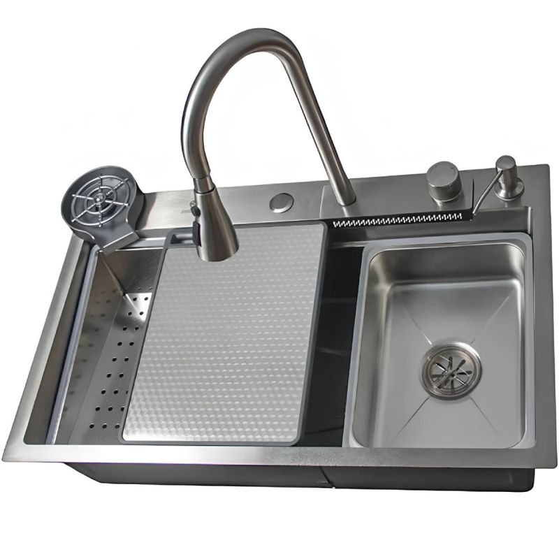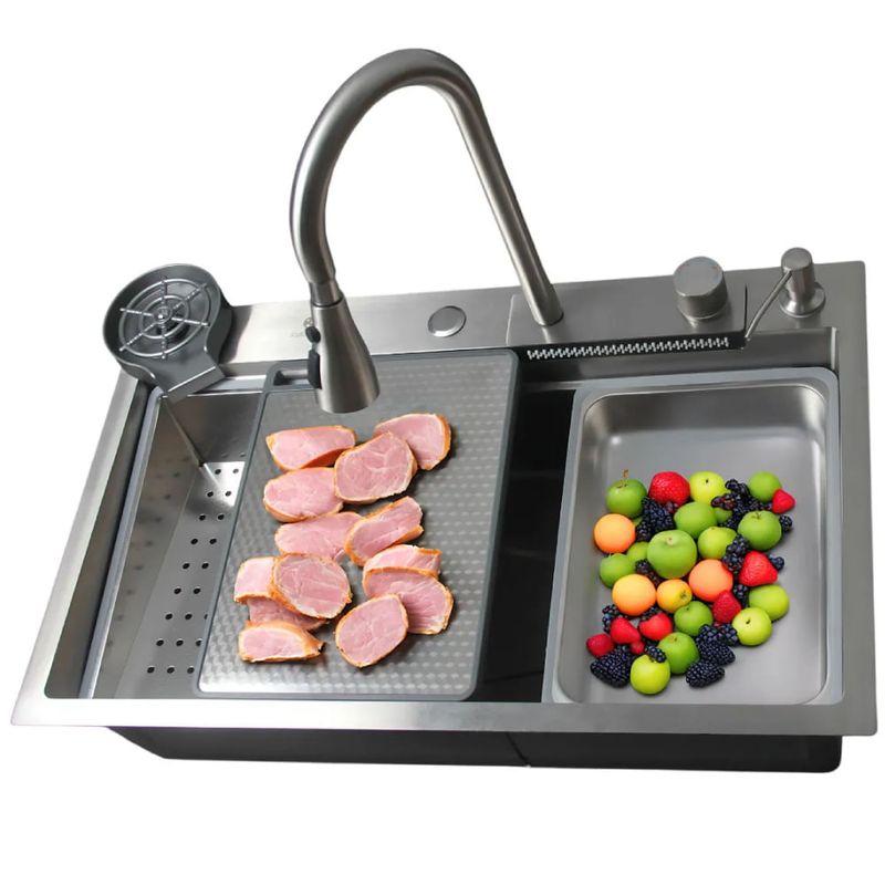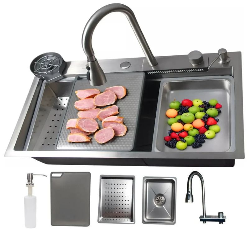 Eleve o nível da sua cozinha com a Cuba Gourmet Premium STILLUS HOME, um conjunto completo que une tecnologia, sofisticação e máxima praticidade. Produzida em Aço Inox 304 de altíssima pureza com 3,0mm de espessura, esta cuba possui acabamento escovado acetinado com pintura eletrostática de nanotecnologia, que a torna anti-risco e extremamente resistente à maresia, ideal para qualquer região. Com medidas externas de 75cm de comprimento, 45cm de largura e 23cm de profundidade, ela oferece amplo espaço interno (69x33x21 cm) e é equipada com sistema anti-ruído para maior conforto. O conjunto inclui uma torneira monocomando com função cascata spray, lavador de copos acoplado, dispenser de detergente, cestos escorredores e uma tábua de corte, proporcionando uma experiência culinária completa e funcional.