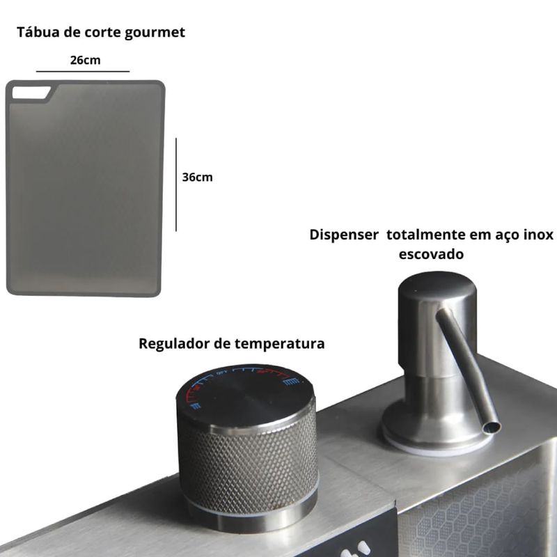 Transforme sua rotina na cozinha. Com a Cuba Gourmet Premium STILLUS HOME, você adquire muito mais que uma pia: um centro multifuncional de alta tecnologia, beleza atemporal e durabilidade garantida para o dia a dia.