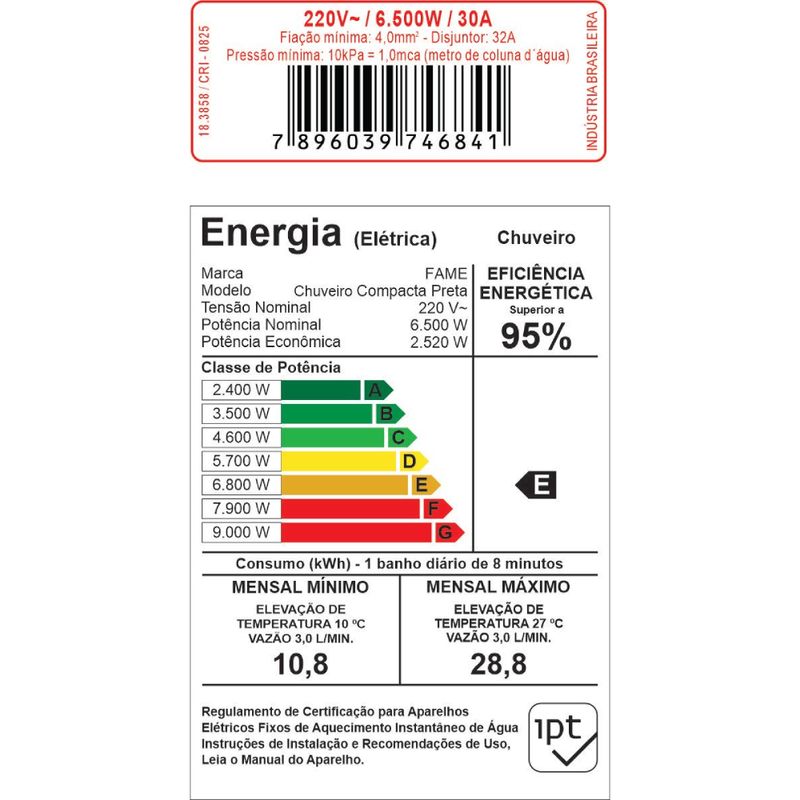 Desfrute de banhos revigorantes com tecnologia, segurança e elegância. O Chuveiro Compacta Eletrônica FAME 6500W é a escolha inteligente para quem busca performance, economia e a qualidade de uma das marcas mais confiáveis do mercado.