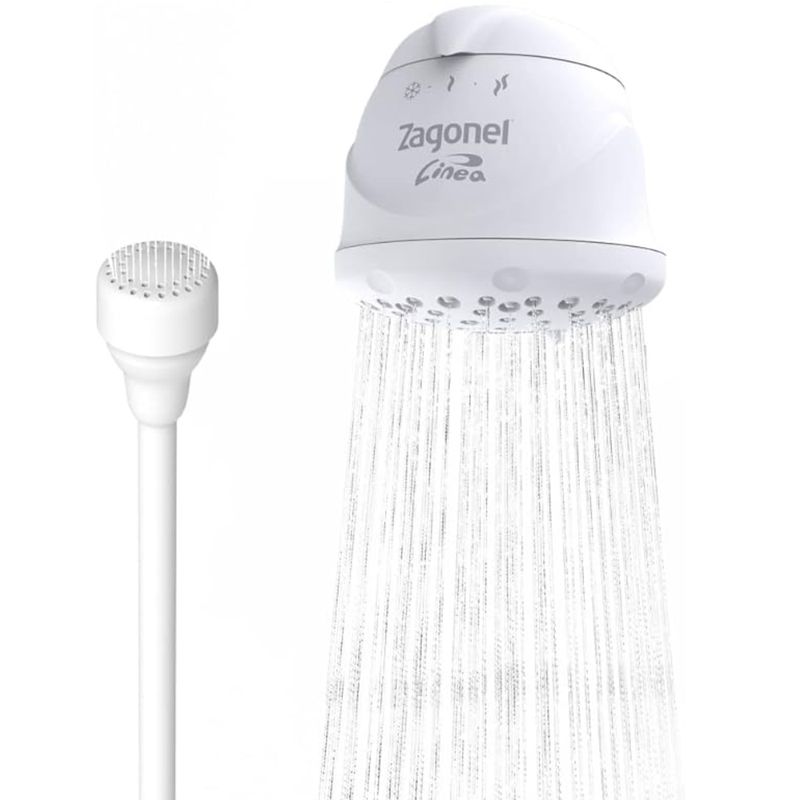 Apresentamos a ducha elétrica da linha Line / Linea da marca Zagonel, modelo com 5500 W de potência para instalação em 220 V, com sistema de controle de 3 temperaturas para ajustar o banho ao seu gosto, e acabamento em branco que combina com diversos estilos de banheiro. Ela é projetada para garantir ótima vazão de água mesmo com baixa pressão (a partir de ~1 m.c.a.).