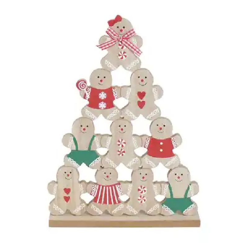 Design: Formato de Árvore de Natal, estilizada como um biscoito de gengibre (gingerbread) decorado.