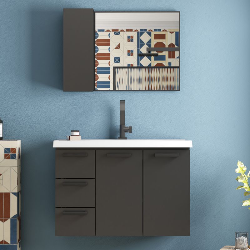 Espelheira Banheiro Aço 73cm Armário Preto - P102912 - COZIMAX
