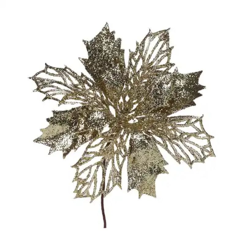 Flor Decorativa com Glitter 18,5cm Ouro - 1090718 - CROMUS