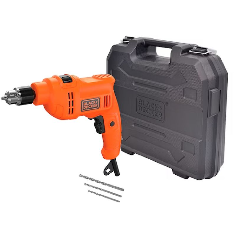 Descrição: A Furadeira de Impacto 3/8” (10mm) 550W BED710550K-BR BLACK+DECKER é uma ferramenta compacta, moderna e extremamente versátil, desenvolvida para atender tanto usuários domésticos quanto profissionais que buscam eficiência e praticidade no dia a dia. Com potência de 550 Watts, oferece excelente desempenho em perfurações com e sem impacto, sendo indicada para madeira, metal, alvenaria e outros materiais. Seu design ergonômico, aliado ao acabamento robusto característico da BLACK+DECKER, proporciona conforto, segurança e maior controle durante o uso. Equipada com mandril de 3/8” (10mm), possui estrutura compacta cerca de 17% mais compacta que a versão anterior TM500 facilitando o manuseio em espaços reduzidos. O modelo funciona em 110 Volts, acompanha brocas, chave de mandril e maleta, oferecendo uma solução completa para quem busca desempenho e organização.