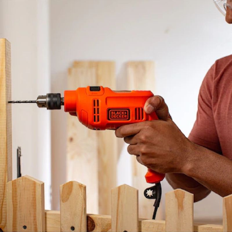 Aplicação, instalação, acessórios e cuidados recomendados: A Furadeira de Impacto BLACK+DECKER BED710550 é indicada para uma ampla variedade de aplicações, como perfurações em madeira, metal, concreto e alvenaria, além de serviços leves de fixação quando utilizada com acessórios adequados. Sua função impacto permite perfurações mais rápidas e eficientes em superfícies mais rígidas, enquanto o modo sem impacto é ideal para materiais delicados e trabalhos de acabamento.