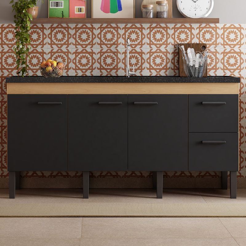 Como acessórios complementares, recomenda-se a utilização de torneiras, sifões e válvulas compatíveis, adquiridos separadamente. Para conservar o acabamento e prolongar a vida útil do gabinete, é importante evitar o contato direto e constante com água, vapor excessivo ou produtos químicos abrasivos. A limpeza deve ser feita apenas com pano macio levemente umedecido, evitando esponjas ásperas e solventes. O design funcional com gavetas de corrediças telescópicas garante abertura suave e maior resistência, ideal para armazenar utensílios, panelas e itens do dia a dia com praticidade.
