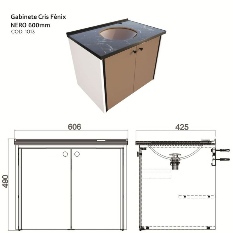 Gabinete para Banheiro Fênix Nero 60x42,5x49cm - 10138 - CRIS-METAL