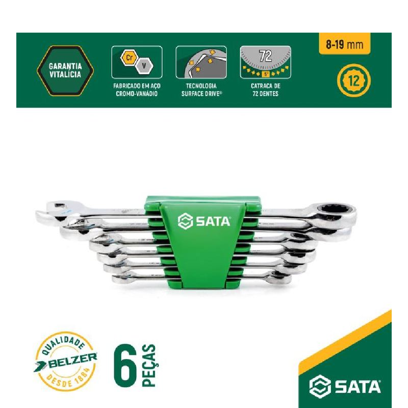 Jogo Chave Combinada Speedy Catraca 8-19mm 6 Peças - ST09033G - SATA