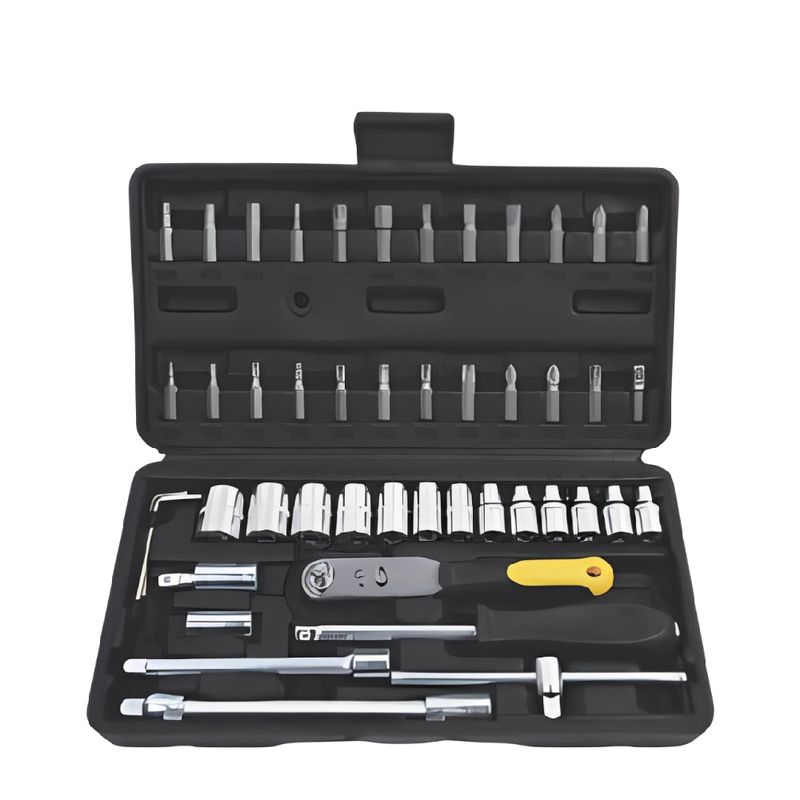 Descrição: O Jogo de Ferramentas com 48 Peças Titanium 7744 é um conjunto completo e versátil desenvolvido para quem precisa de praticidade, organização e eficiência em trabalhos de manutenção. Ideal para uso doméstico, automotivo e em oficinas, este kit reúne diversos soquetes, bits, extensões e acessórios que permitem apertar e soltar porcas e parafusos de diferentes tamanhos com precisão. As ferramentas são fabricadas em aço resistente de alta durabilidade, oferecendo excelente desempenho e longa vida útil mesmo em usos frequentes. O conjunto acompanha uma maleta plástica resistente, que facilita o transporte, a organização e o armazenamento das peças, mantendo todas as ferramentas sempre protegidas e acessíveis. Compacto e funcional, este kit é perfeito para quem busca um jogo de ferramentas completo com encaixe de 1/4”, ideal para reparos rápidos, montagem de equipamentos e manutenções gerais.