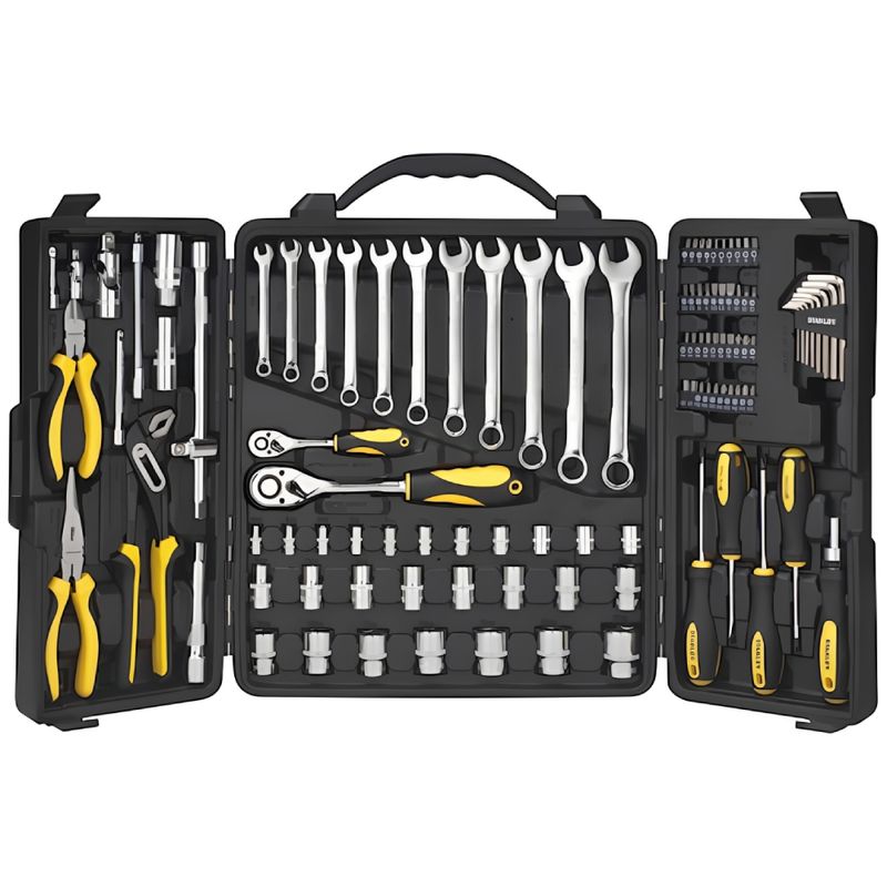 O Kit Multiferramentas STANLEY com 110 peças é a solução completa para mecânicos e entusiastas que buscam qualidade, durabilidade e versatilidade em um único conjunto. Fabricado em aço Cromo Vanádio de alta resistência, as ferramentas oferecem maior torque e durabilidade, suportando as demandas dos trabalhos mais exigentes. Os soquetes e chaves combinadas contam com encaixe sextavado Maxi-Drive, cujo perfil curvo distribui a força de impacto para a borda do fixador, evitando danos e proporcionando maior eficiência. O estojo dobrável com abertura dupla facilita a identificação e o transporte das peças.
