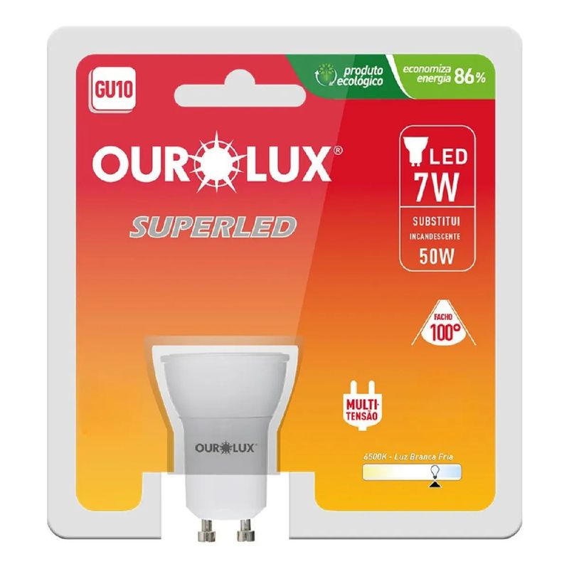 Como cuidados, evite manusear a lâmpada quando estiver ligada ou quente e desligue a energia elétrica antes da instalação ou substituição. A limpeza deve ser feita apenas com pano seco, sem produtos químicos. A tecnologia LED garante baixo consumo de energia, longa vida útil e menor necessidade de manutenção, tornando esta lâmpada uma escolha econômica e sustentável. A Lâmpada Dicróica Super LED GU10 7W 6500K Ourolux é a solução ideal para quem busca qualidade de iluminação, economia, eficiência e destaque visual, agregando valor estético e funcional a qualquer projeto de iluminação.