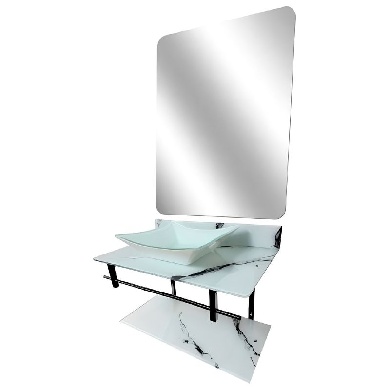 Material Principal: Vidro lapidado temperado (10mm) na cor branco marmorizado.
