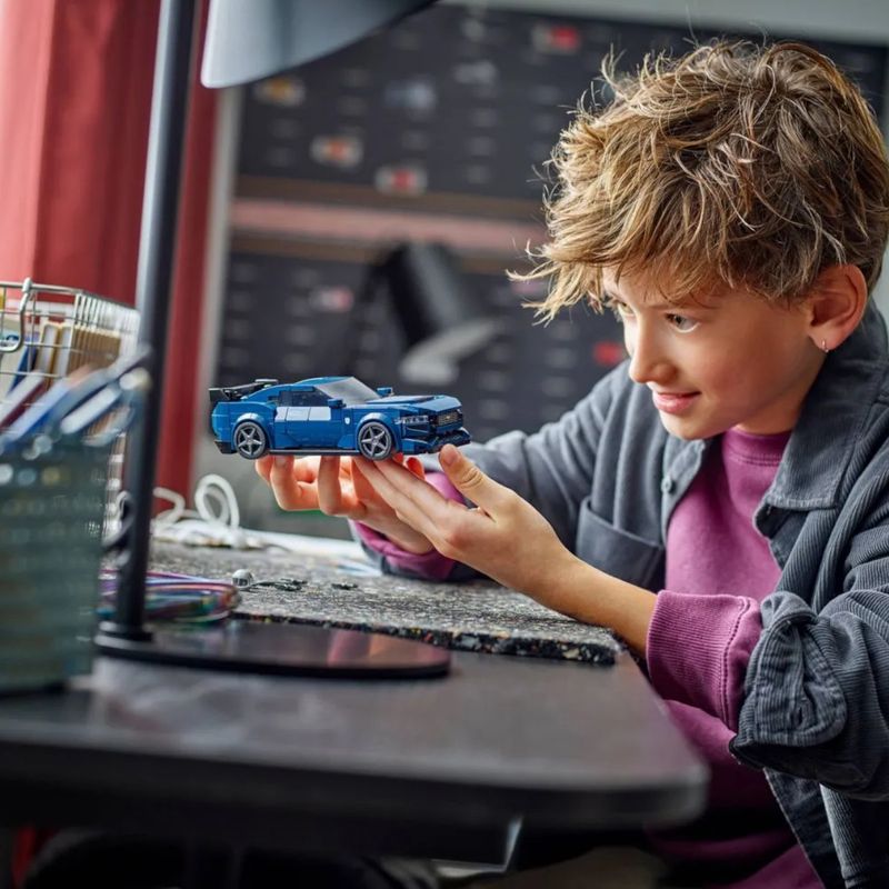 Descrição: Apresentamos o Conjunto LEGO Speed Champions Ford Mustang Dark Horse Sports Car (76920), uma homenagem detalhada construída em peças ao poderoso ícone automotivo americano. Este conjunto é fabricado com as peças LEGO em plástico ABS de alta qualidade, garantindo encaixe preciso e um acabamento robusto. O modelo reproduz fielmente o carro real, apresentando um vibrante tom de azul que é a cor característica deste Mustang, com detalhes em preto e elementos cromados. Quando montado, este esportivo em miniatura apresenta medidas impressionantes de mais de 4 cm de altura, 15 cm de comprimento e 7 cm de largura, tornando-se uma peça de colecionador perfeita para exibição.
