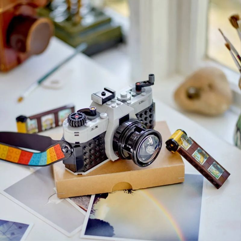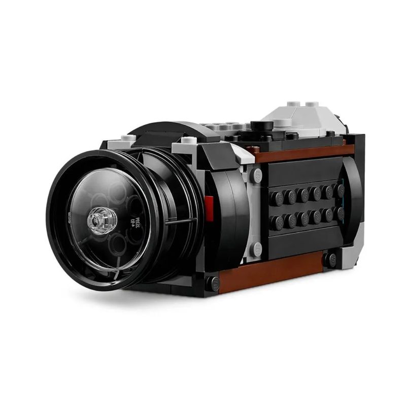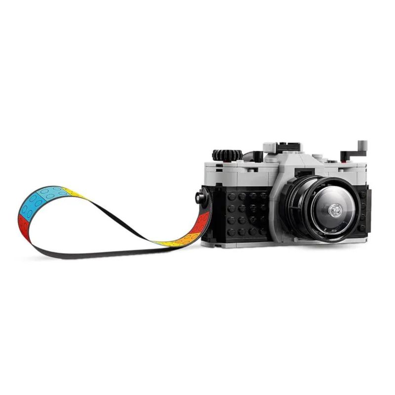 Descrição: Apresentamos o Conjunto LEGO® Creator 3em1 Câmera Retrô (31147), a caixa de construção que transforma um pacote de peças em três brinquedos retrô diferentes, estimulando a criatividade e a imaginação. Este conjunto é fabricado com os icônicos blocos LEGO em plástico ABS de alta qualidade, garantindo durabilidade e um encaixe perfeito. As peças vêm em uma variedade de cores vibrantes que compõem os modelos, incluindo tons de preto, cinza, vermelho e detalhes em amarelo. A câmera principal, quando montada, possui medidas aproximadas de 7 cm de altura, 13 cm de largura e 8 cm de profundidade, sendo um item de exibição perfeito para qualquer prateleira.