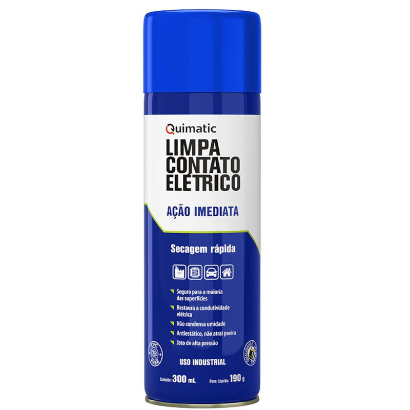 - O Limpa Contato Elétrico de Ação Imediata da Quimatic é uma composição de solventes adequados, de evaporação rápida, recomendado para a limpeza e restauração de contatos elétricos sem agredir os diversos tipos de superfícies de plásticos. Isento de CFC. Remove sujeira, poeira, umidade e oleosidade. É indicado para a remoçãode sujeira, poeira, umidade, oleosidade e fluxo de solda em contatos elétricos de computadores, drivers, impressoras, teclados, equipamentos de telefonia, circuitos, impressoras, equipamentos de testes, relês, interruptores, fusíveis, automóveis, aparelhos de som e televisão e na indústria eletroeletrônica em geral. Contém agente antiestático (não atrai poeira) - a superfície fica mais limpa por mais tempo.