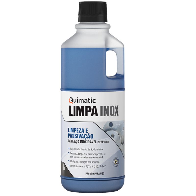 - O LIMPA-INOX da Quimatic é o produto ideal para a desoxidação e limpeza de superfícies de aço inoxidável da série 300. Limpa e desoxida: tanques,reatores, tubulações, estruturas etc, nas indústrias em geral. Indicado também para a limpeza de instalações sanitárias nas indústrias alimentícias e farmacêuticas.