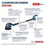 Principais Características e Informações Técnicas: A Lixadeira de Parede GTR 550 foi desenvolvida com tecnologia de ponta para atender às demandas do trabalho profissional diário, oferecendo um conjunto de características técnicas que garantem eficiência e durabilidade.
