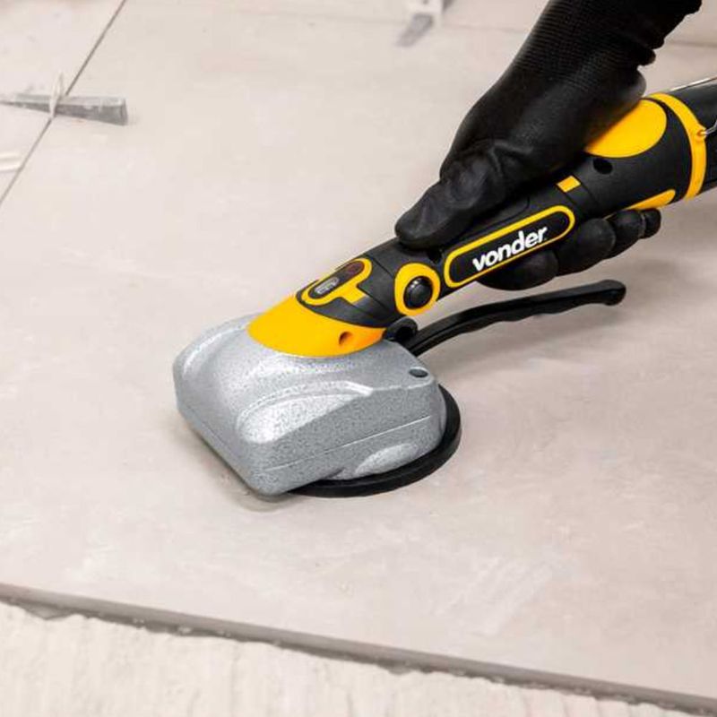 Controle Digital Preciso: Diferencie-se pela qualidade. Conta com 5 níveis de vibração ajustáveis e identificados em um display claro. Regule a intensidade de 2.200 a 9.300 VPM conforme a necessidade do piso e do tipo de rejunte, garantindo máxima aderência sem risco de danificar a peça.