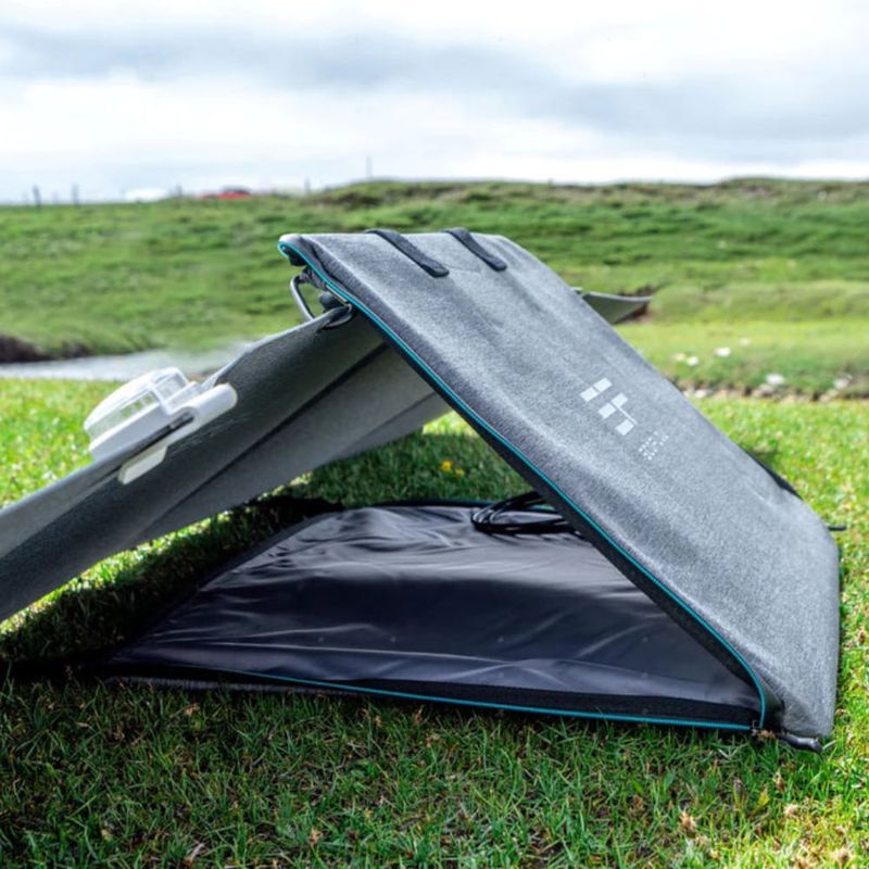 O Painel Solar Portátil Dobrável 110W EcoFlow foi desenvolvido para quem busca energia limpa e confiável com máxima portabilidade. Com taxa de conversão líder do setor de até 23% e células de silício monocristalino, ele é cerca de 10% menor e mais leve que painéis similares do mercado, pesando apenas 4kg. Seu design dobrável compacto (42 x 48 x 2,5 cm quando fechado) facilita o transporte em viagens, acampamentos ou no dia a dia. Acompanha uma bolsa que funciona como suporte autossustentável, permitindo ajustar o ângulo ideal para captação solar máxima. Com certificação IP68, é resistente à água e poeira, suportando imersão por até 72 horas em condições controladas, garantindo durabilidade mesmo em climas adversos.
