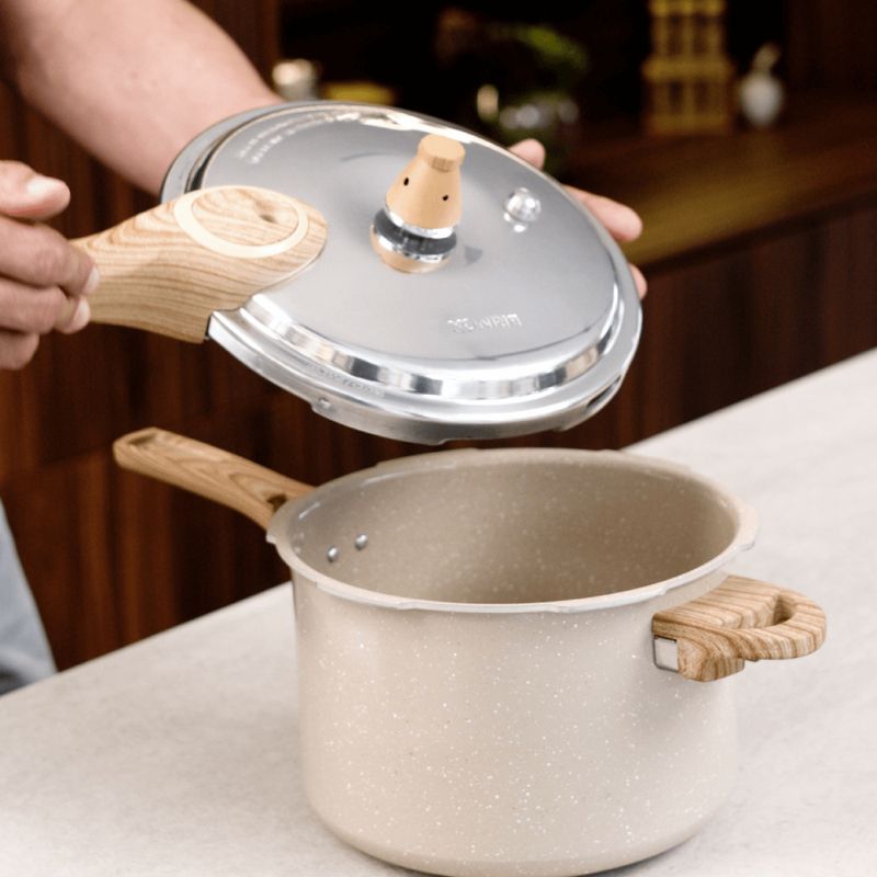 Apresentamos a Panela de Pressão Brinox Ceramic Life Pressure, a combinação perfeita de segurança, alta tecnologia e design moderno para otimizar o seu tempo na cozinha. Esta panela é fabricada em alumínio de alta resistência, que garante aquecimento rápido e uniforme, sendo compatível com todos os tipos de fogão, incluindo por indução (graças ao seu fundo especial). Seu grande diferencial é o revestimento interno cerâmico antiaderente da linha Ceramic Life, que permite cozinhar com menos óleo, evita que os alimentos grudem e facilita a limpeza. A cor Areia confere um visual sofisticado e moderno. Para máxima segurança, possui um sistema de 4 válvulas de proteção, e seus cabos em baquelite com acabamento Soft-Touch são antitérmicos, oferecendo conforto e segurança no manuseio. Com capacidade de 4,2 litros, é ideal para preparos do dia a dia para toda a família.