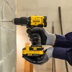 A ferramenta é indicada para perfurações em madeira, metal e alvenaria, além de parafusamentos em geral, sendo ideal para montagens, instalações e manutenções. Para utilização, é necessário adquirir separadamente a bateria e o carregador compatíveis com o sistema V20. A instalação dos acessórios é simples, graças ao mandril sem chave, permitindo troca rápida e prática. Recomenda-se o uso de EPIs, como óculos e luvas, durante a operação. Para maior durabilidade, evite sobrecargas prolongadas e mantenha a ferramenta limpa e armazenada em local seco. A luz LED integrada auxilia em trabalhos em locais com pouca iluminação, garantindo mais precisão e segurança no uso.