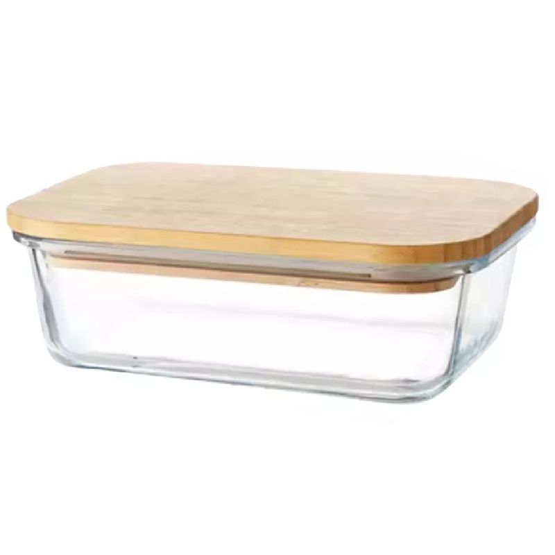 Pote de Vidro Retangular com Tampa de Bambu 395Ml - D1664 - DOLCE HOME