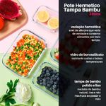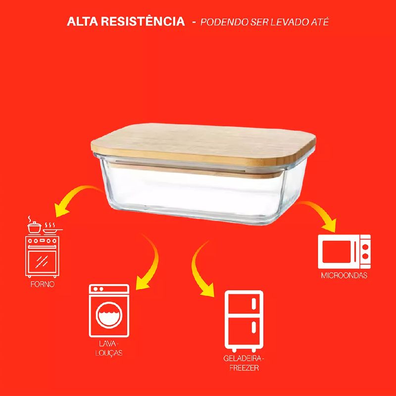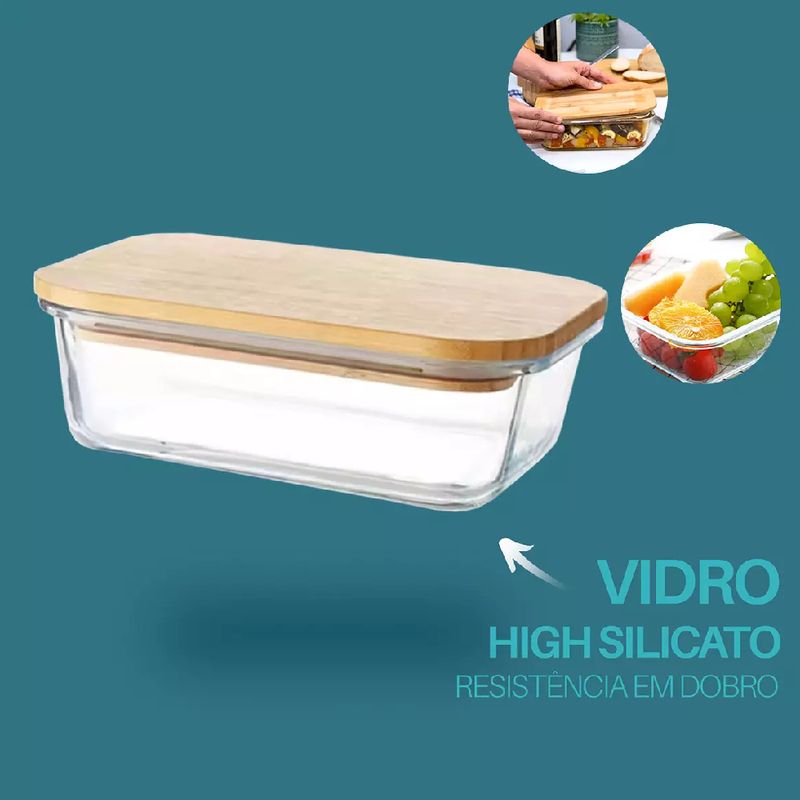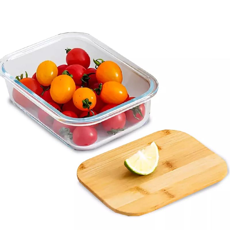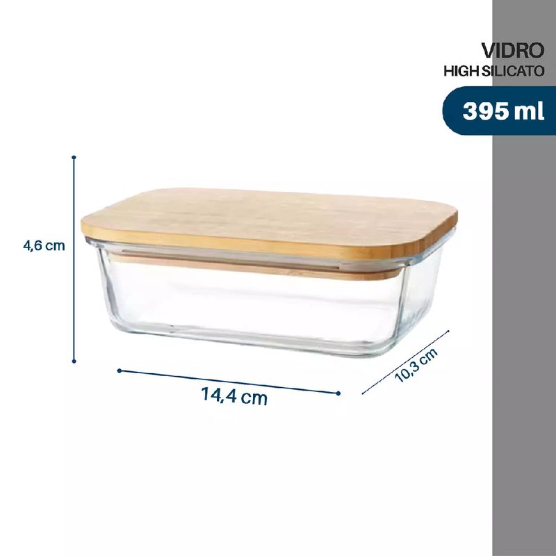 O Pote de Vidro Retangular com Tampa de Bambu 395ml é indicado para armazenar alimentos na geladeira, transportar marmitas com segurança ou organizar grãos, frutas, legumes, saladas e preparos prontos. Graças ao vidro borossilicato, pode ser utilizado no forno e no micro-ondas sem a tampa, suportando altas temperaturas sem comprometer a estrutura. Também pode ser levado ao freezer, garantindo versatilidade no dia a dia. A tampa de bambu proporciona vedação eficiente, ajudando a conservar os alimentos por mais tempo e evitando a dispersão de odores na geladeira. Para maior durabilidade, recomenda-se lavar o recipiente com esponja macia e detergente neutro; o vidro pode ir à lava-louças, mas a tampa de bambu deve ser higienizada manualmente e bem seca após a limpeza. Funcional, sustentável e elegante, o pote DOLCE HOME é a solução perfeita para manter seus alimentos frescos, organizados e sempre prontos para o consumo.