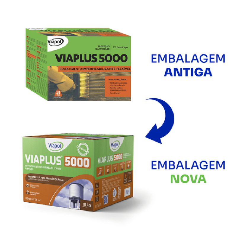 Alta Resistência e Durabilidade: Formulado para resistir às intempéries, o Viaplus 5000 é resistente ao envelhecimento acelerado pela exposição ao sol (raios UV), à carbonatação e a ciclos de molhagem e secagem. Sua vida útil é prolongada, assegurando que o investimento em impermeabilização seja feito uma única vez, da maneira correta.