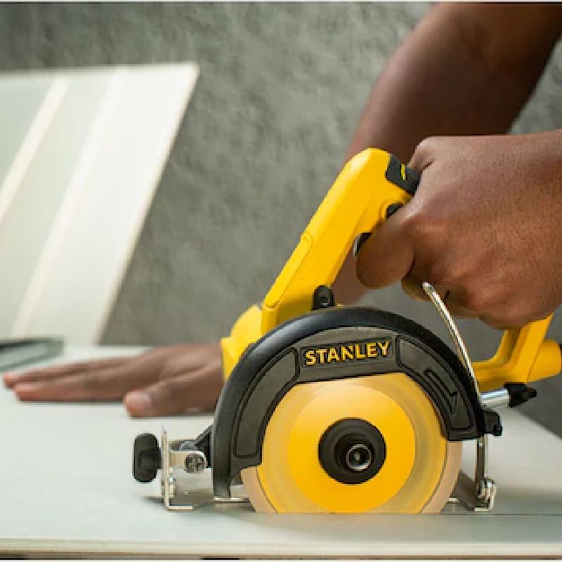 A Serra Mármore 125mm STANLEY foi projetada para oferecer versatilidade e precisão. O ajuste de inclinação de 0° a 45° permite cortes retos e chanfrados, adaptando-se a diferentes necessidades da obra. A trava de segurança evita acionamentos acidentais, proporcionando mais proteção ao operador. Seu motor potente garante rapidez no corte, reduzindo esforço e aumentando a produtividade. Para utilização adequada, recomenda-se instalar corretamente o disco compatível com o material a ser cortado, utilizando a chave de aperto inclusa para fixação segura. Antes de iniciar o trabalho, verifique se o disco está bem alinhado e firme. Utilize sempre equipamentos de proteção individual (EPIs), como óculos de segurança, luvas, protetor auricular e máscara contra poeira. Durante o corte, mantenha firmeza na empunhadura e não force excessivamente o equipamento; permita que o motor realize o trabalho com eficiência. Para cortes em cerâmica e porcelanato, recomenda-se o uso de disco diamantado apropriado. Após o uso, desligue da tomada, aguarde a parada total do disco e realize a limpeza externa com pano seco.
