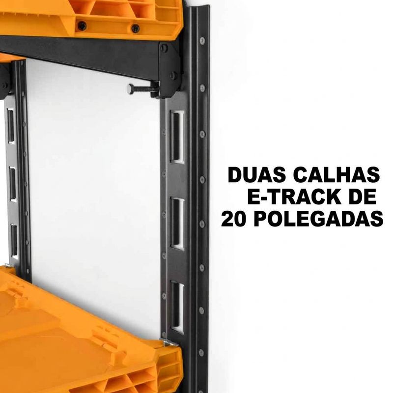 Inclui 2 trilhos padrão E-Track de 20” para fixação em parede ou estrutura