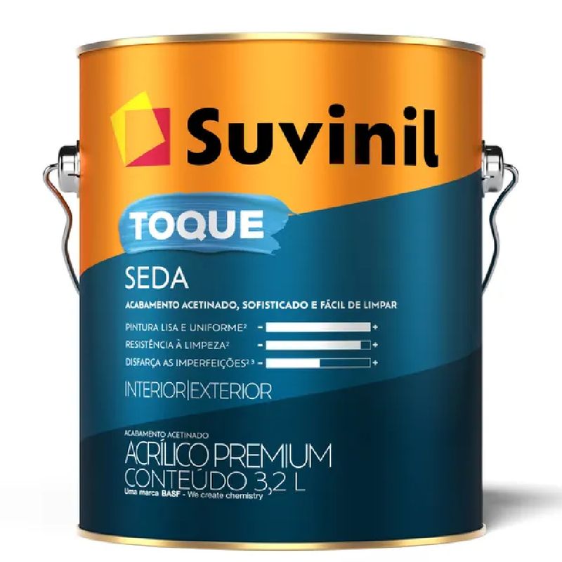 Descrição: A Tinta Acrílica Suvinil Toque Seda 3,2 Litros é a escolha ideal para quem busca um acabamento acetinado sofisticado, capaz de valorizar paredes e superfícies com um toque suave e elegante. Desenvolvida para oferecer equilíbrio entre beleza e desempenho, a Suvinil Toque Seda proporciona um visual moderno, com leve brilho que destaca as cores sem excessos, tornando os ambientes mais aconchegantes e refinados. Sua fórmula avançada garante pintura lisa e uniforme, além de conforto durante a aplicação, já que é um produto sem cheiro. Indicada tanto para áreas internas quanto externas, essa tinta acrílica é versátil e atende desde ambientes residenciais até espaços comerciais, sempre com a qualidade reconhecida da marca Suvinil, referência no mercado brasileiro de tintas.