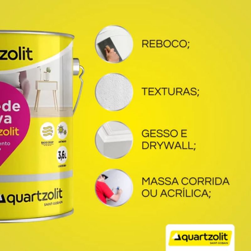 A parede deve estar uniforme, limpa e seca. Lixe utilizando a lixa massa quartzolit. Depois de lixar, tire todo o pó antes da pintura. A preparação cuidadosa da superfície a ser pintada é princípio fundamental para que a pintura dure por muito tempo. Para maiores informações, consulte a embalagem do produto.