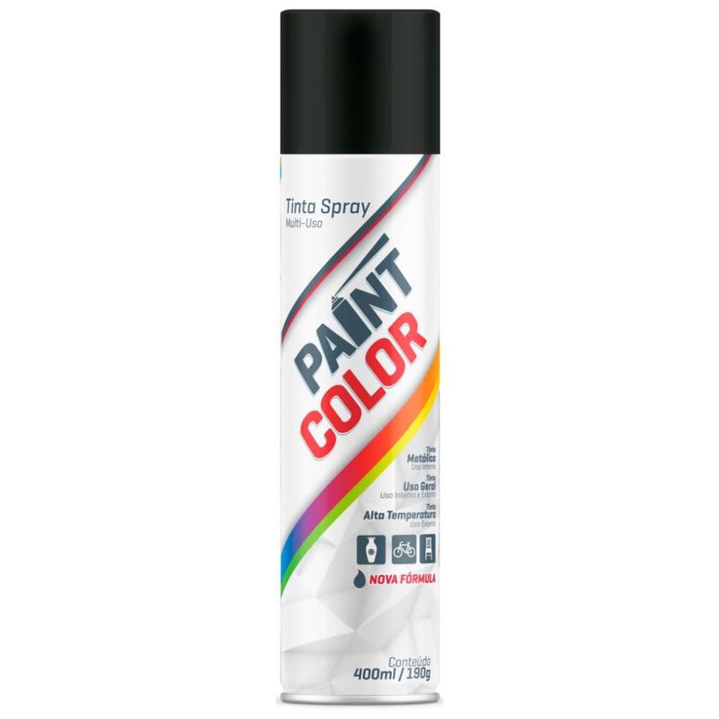Tinta Spray 400ml Uso Geral Preto Brilhante - 510150 - PAINTCOLOR