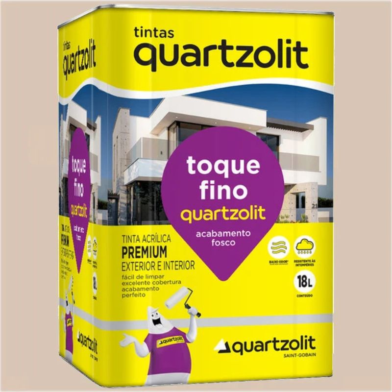 Apresentamos a Tinta Acrílica Premium Toque Fino Areia da Quartzolit, a escolha perfeita para criar ambientes luminosos, neutros e serenos com a garantia de um acabamento impecável e duradouro. Esta tinta é formulada com resinas acrílicas de alta tecnologia, resultando em um produto premium de acabamento fosco que proporciona uma superfície uniforme e sofisticada. A cor Areia é um tom claro, quente e atemporal que reflete a luz, amplia os espaços e combina harmoniosamente com diversos estilos de decoração. Seu grande diferencial é a excelente cobertura, que minimiza o número de demãos e oferece economia, com um rendimento de até 127 m² acabados por lata de 18L. Possui baixo odor, secagem rápida e é fácil de limpar, facilitando a aplicação e a manutenção. Indicada para uma ampla variedade de superfícies, como alvenaria, concreto, gesso e massa acrílica, tanto em ambientes internos quanto externos.