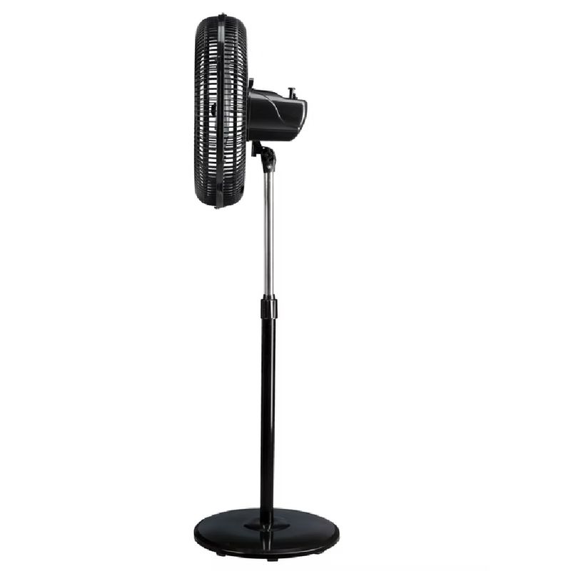 Inclinação Vertical Ajustável: A cabeça do ventilador pode ser angulada para cima ou para baixo, complementando o ajuste de altura para um direcionamento perfeito do vento.